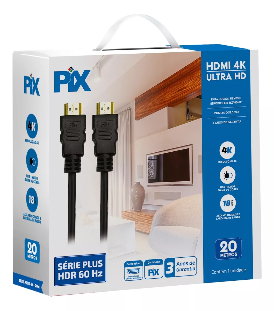 Os cabos HDMI PIX oferecem os recursos mais modernos, alta largura de banda, dual view e proporção de cinema 21:9, com qualidade garantia, para que você possa obter o melhor de seus equipamentos.