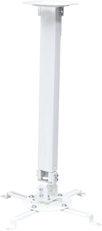 Indicado para instalação em tetos de alvenaria ou vigas de madeira e compatível com projetores com até 13,5 Kg que possuam 3 ou 4 pontos de fixação roscados. O afastamento entre os pontos roscados presentes no projetor deve ser entre 54 e 320 mm (diâmetro) para alcançar as hastes do suporte. A base possui regulagem de altura com distância mínima do teto até o projetor de 54,5 cm e máxima de 90 cm. Ajuste preciso da imagem projetada! Possui várias opções de ajustes, como rotação de 360°, ajuste de ângulo vertical e horizontal de +15 a -15° e ajuste para teto inclinado. Produzido em aço carbono com tratamento anticorrosão e pintura epóxi eletrostática de alta resistência, aliando durabilidade, segurança e excelente acabamento.